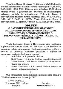 Prepiske, koje datiraju iz 2023. godine, pokazuju kako su zapošljavanja, činovanja i premještaji u institucijama poput Sudske policije, Granične policije i BH Pošte, bili predmet komunikacije između najviših funkcionera u Federaciji BiH.